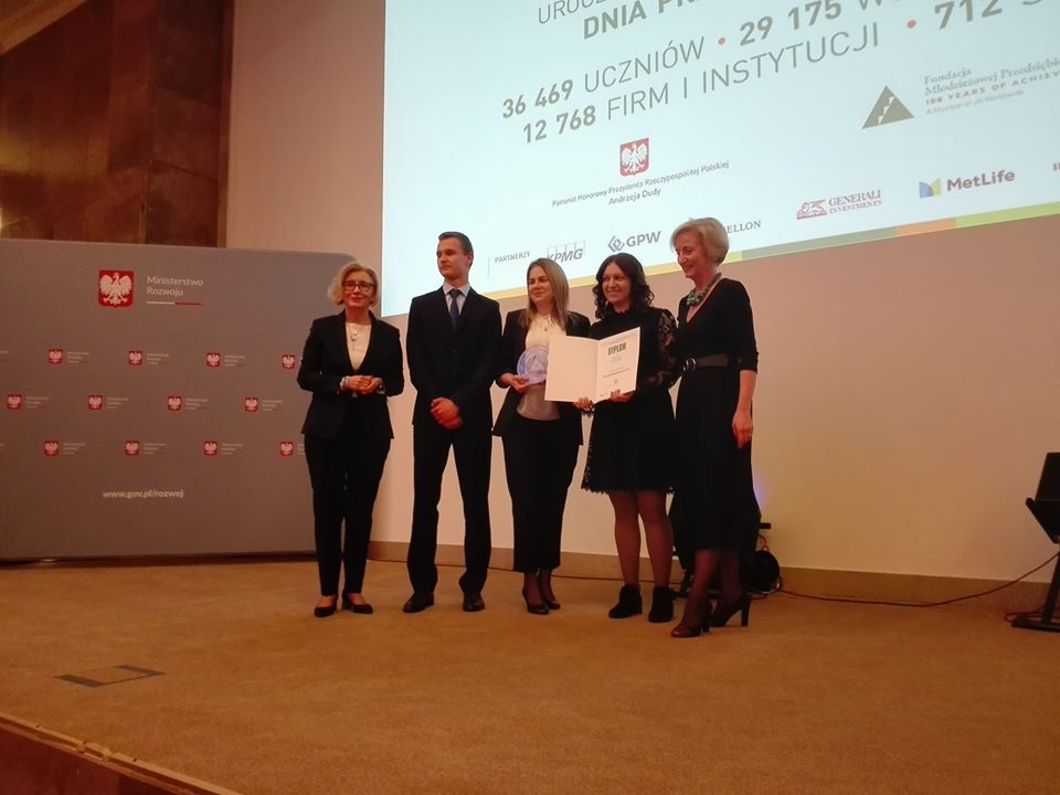 Delegacja szkoły złożyła podziękowania Fundacji Młodzieżowej Przedsiębiorczości i kapitule za tak zaszczytne wyróżnienie szkoły w konkursie.