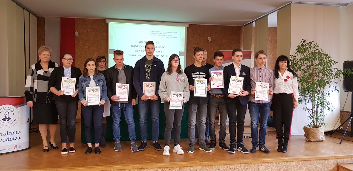 28 marca 2019 r. w Zespole Szkół Ponadgimnazjalnych w Trzciance odbyła się kolejna edycja konkursu matematycznego dla uczniów klas I szkół ponadgimnazjalnych. Wśród pięciu wyróżnionych uczniów technikum, trzech to uczniowie naszej szkoły.