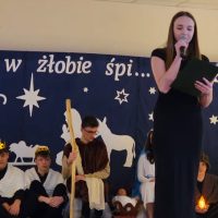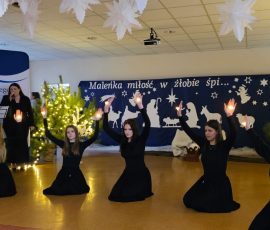 Dopełnieniem wspomnianego dążenia do sacrum stała się uroczysta, bożonarodzeniowa akademia oraz wigilijne spotkanie dyrekcji, nauczycieli, pracowników administracji i obsługi naszej szkoły. Podczas tego wydarzenia nie zabrakło tych, którzy krzewili i podtrzymywali te wartości wśród nas w murach naszej szkoły w minionych dekadach. Nasi emeryci z zapałem i entuzjazmem odpowiedzieli na zaproszenie na to wydarzenie. Nie zabrakło chwil wzruszenia, refleksji i zadumy. Piękno kolęd i pastorałek zostało wkomponowane w artystyczny program w wykonaniu naszych uczniów. Jak podkreślił dyrektor szkoły, Pan Jan Palacz, światło, które stało się symbolem narodzin Jezusa zostało ukazane jak nadzieja na odrodzenie w nas tego, co najlepsze i najpiękniejsze.