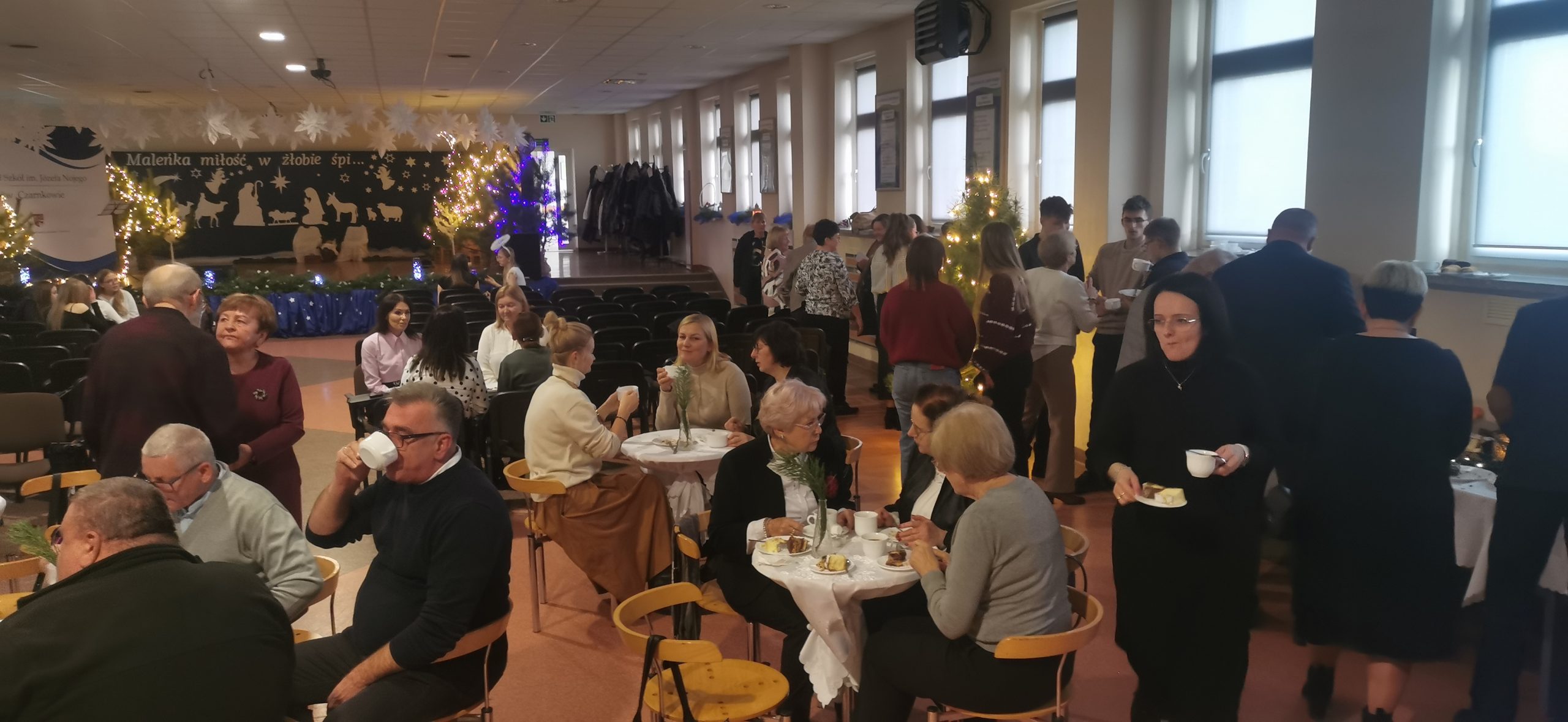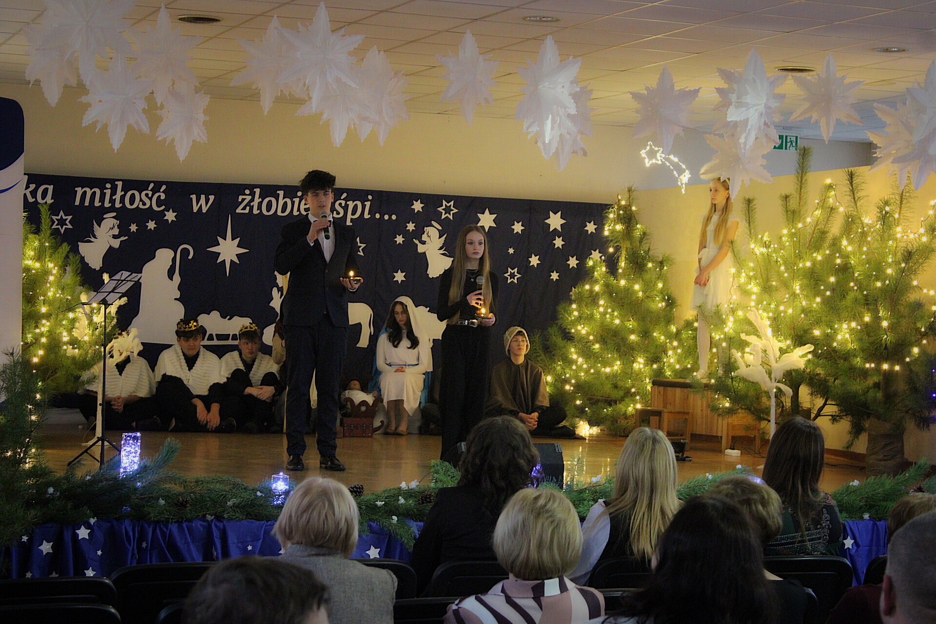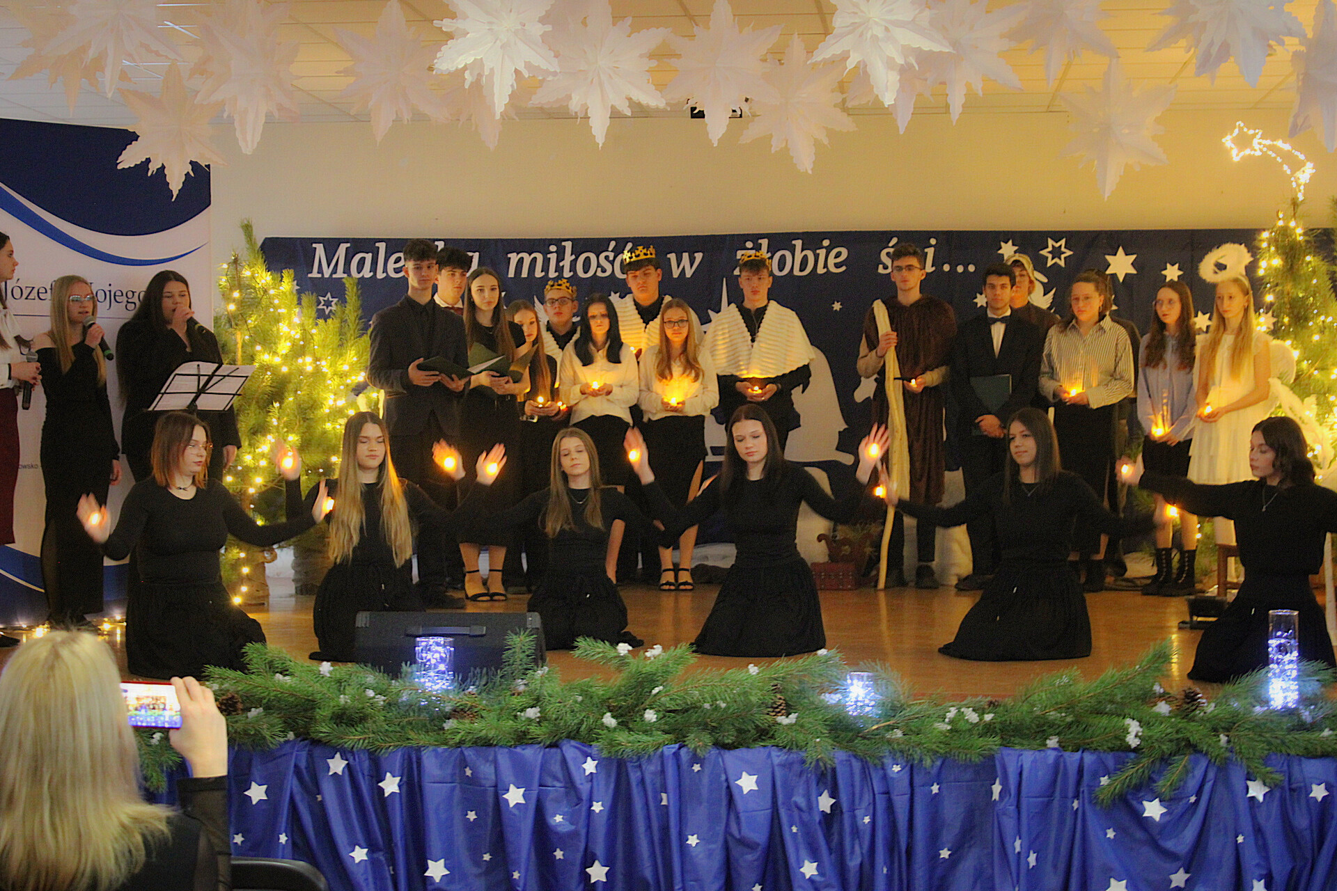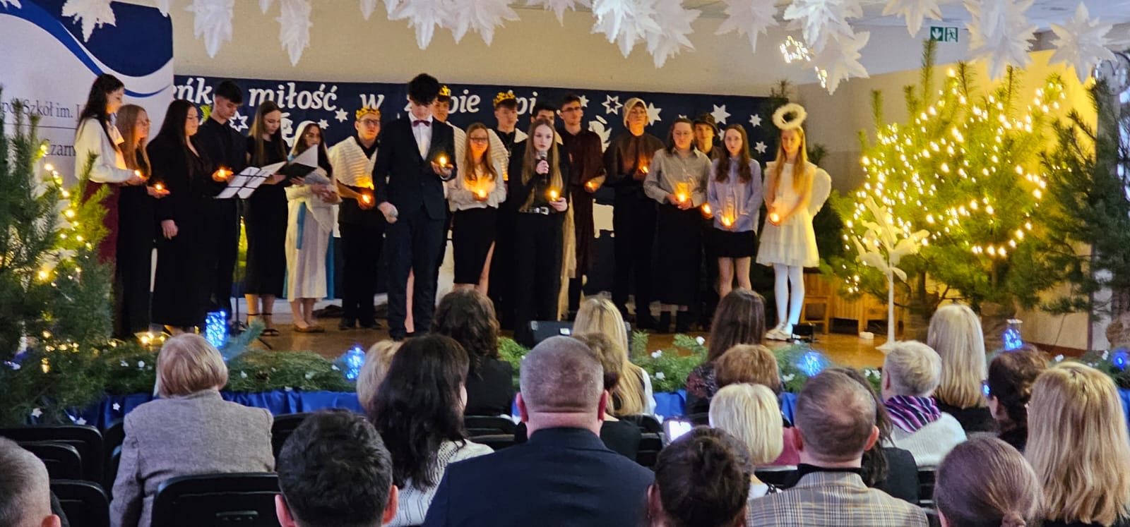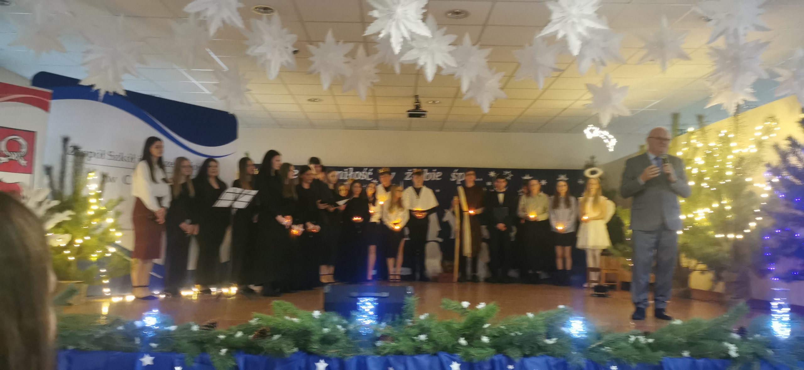 Dopełnieniem wspomnianego dążenia do sacrum stała się uroczysta, bożonarodzeniowa akademia oraz wigilijne spotkanie dyrekcji, nauczycieli, pracowników administracji i obsługi naszej szkoły. Podczas tego wydarzenia nie zabrakło tych, którzy krzewili i podtrzymywali te wartości wśród nas w murach naszej szkoły w minionych dekadach. Nasi emeryci z zapałem i entuzjazmem odpowiedzieli na zaproszenie na to wydarzenie. Nie zabrakło chwil wzruszenia, refleksji i zadumy. Piękno kolęd i pastorałek zostało wkomponowane w artystyczny program w wykonaniu naszych uczniów. Jak podkreślił dyrektor szkoły, Pan Jan Palacz, światło, które stało się symbolem narodzin Jezusa zostało ukazane jak nadzieja na odrodzenie w nas tego, co najlepsze i najpiękniejsze.