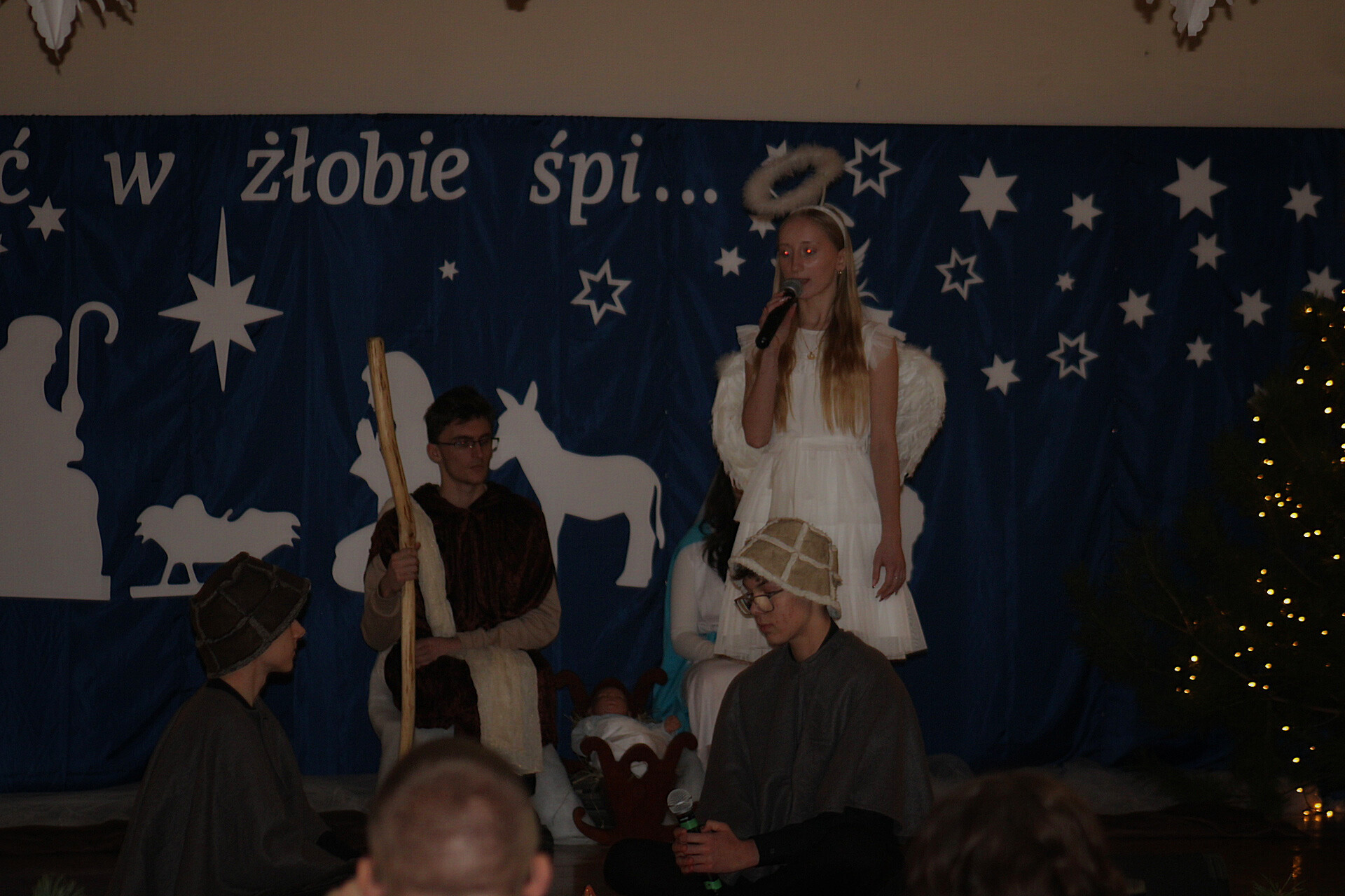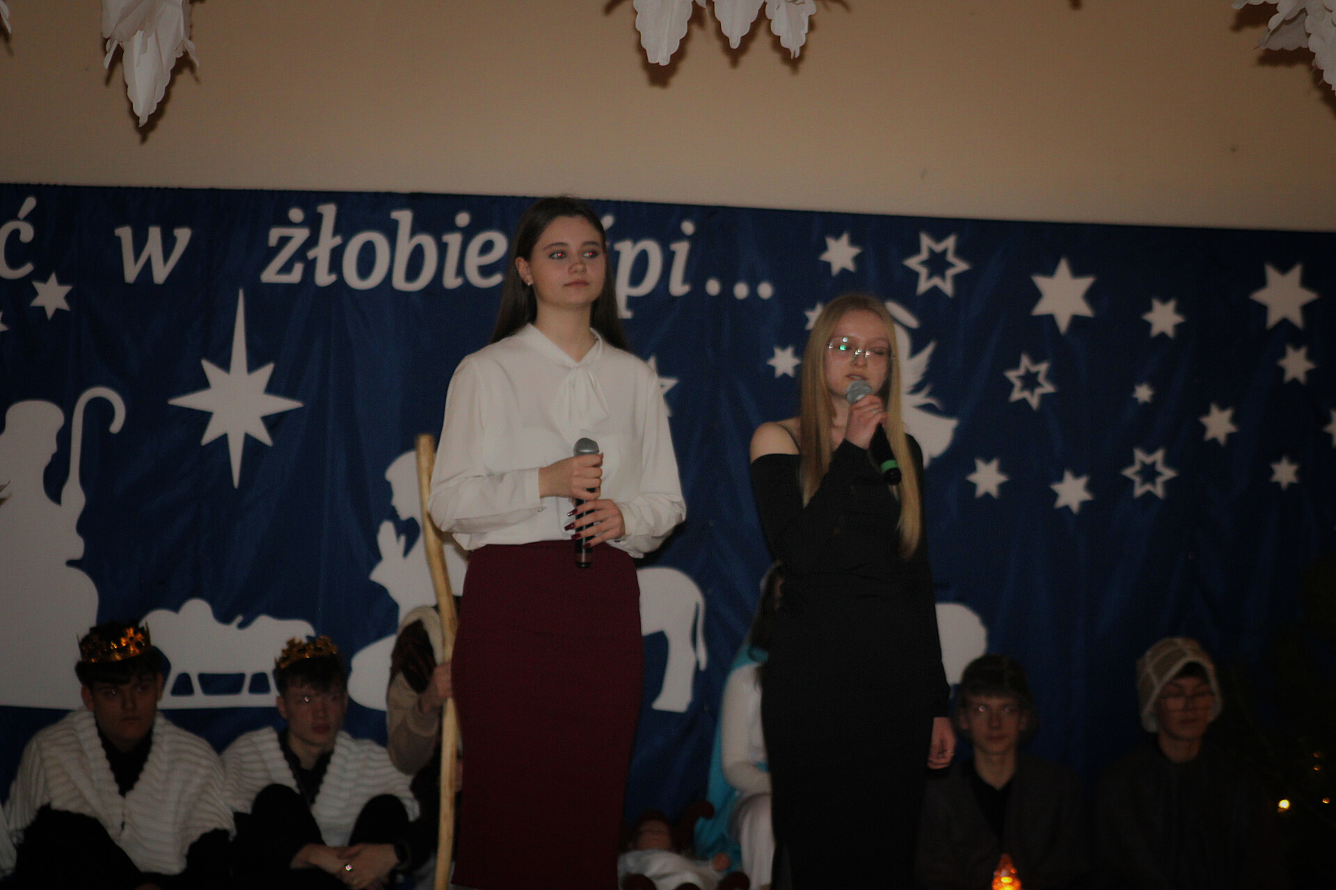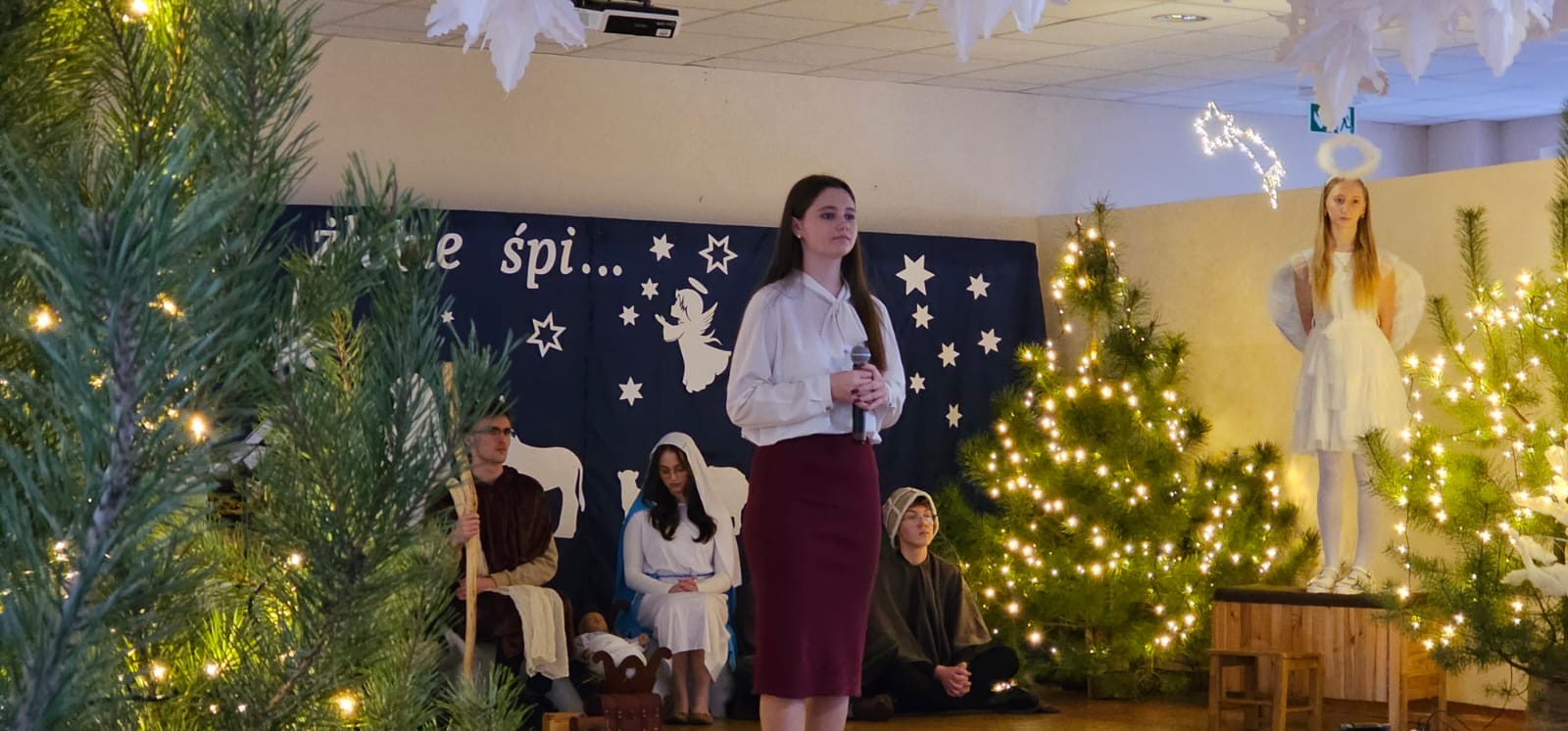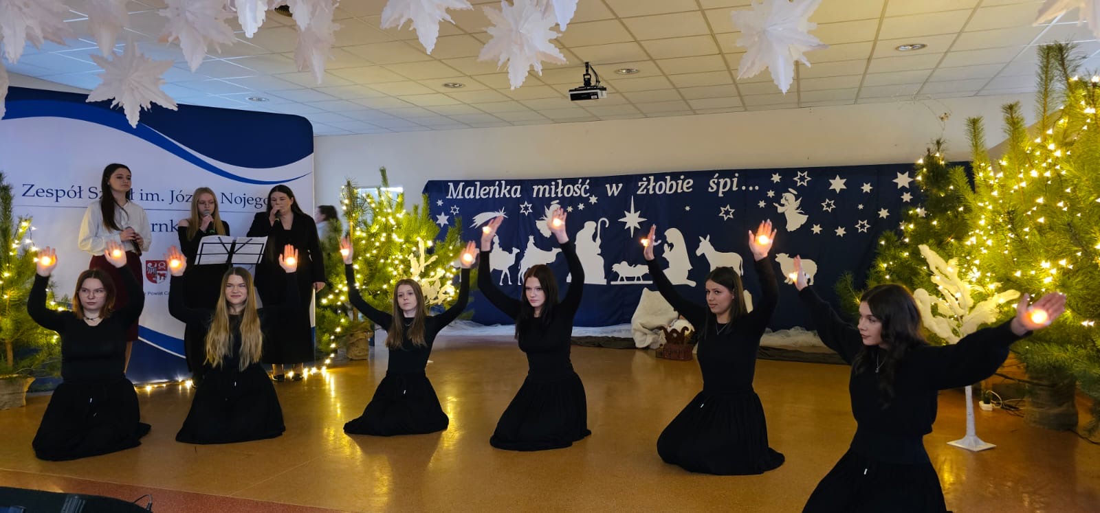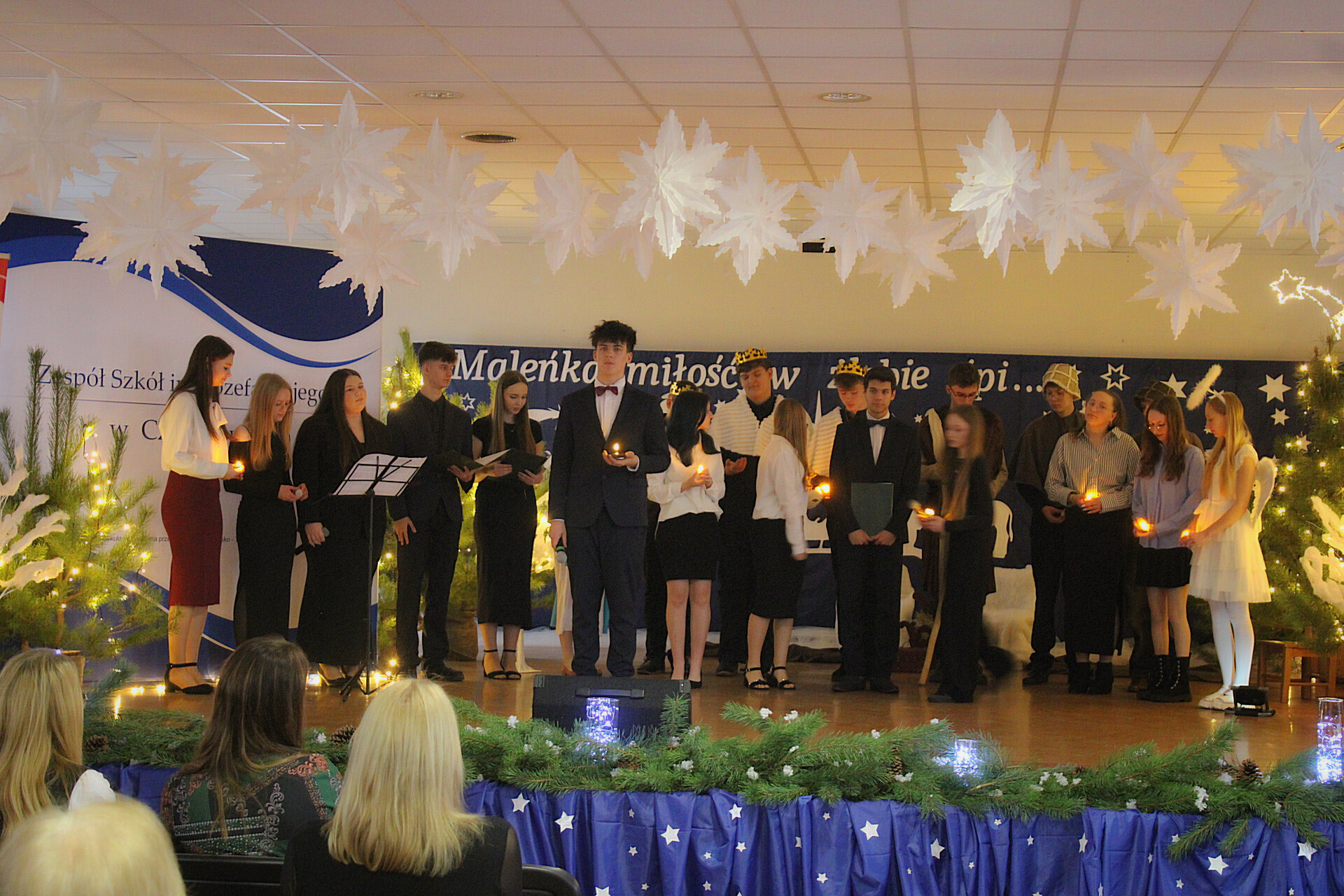 Dopełnieniem wspomnianego dążenia do sacrum stała się uroczysta, bożonarodzeniowa akademia oraz wigilijne spotkanie dyrekcji, nauczycieli, pracowników administracji i obsługi naszej szkoły. Podczas tego wydarzenia nie zabrakło tych, którzy krzewili i podtrzymywali te wartości wśród nas w murach naszej szkoły w minionych dekadach. Nasi emeryci z zapałem i entuzjazmem odpowiedzieli na zaproszenie na to wydarzenie. Nie zabrakło chwil wzruszenia, refleksji i zadumy. Piękno kolęd i pastorałek zostało wkomponowane w artystyczny program w wykonaniu naszych uczniów. Jak podkreślił dyrektor szkoły, Pan Jan Palacz, światło, które stało się symbolem narodzin Jezusa zostało ukazane jak nadzieja na odrodzenie w nas tego, co najlepsze i najpiękniejsze.