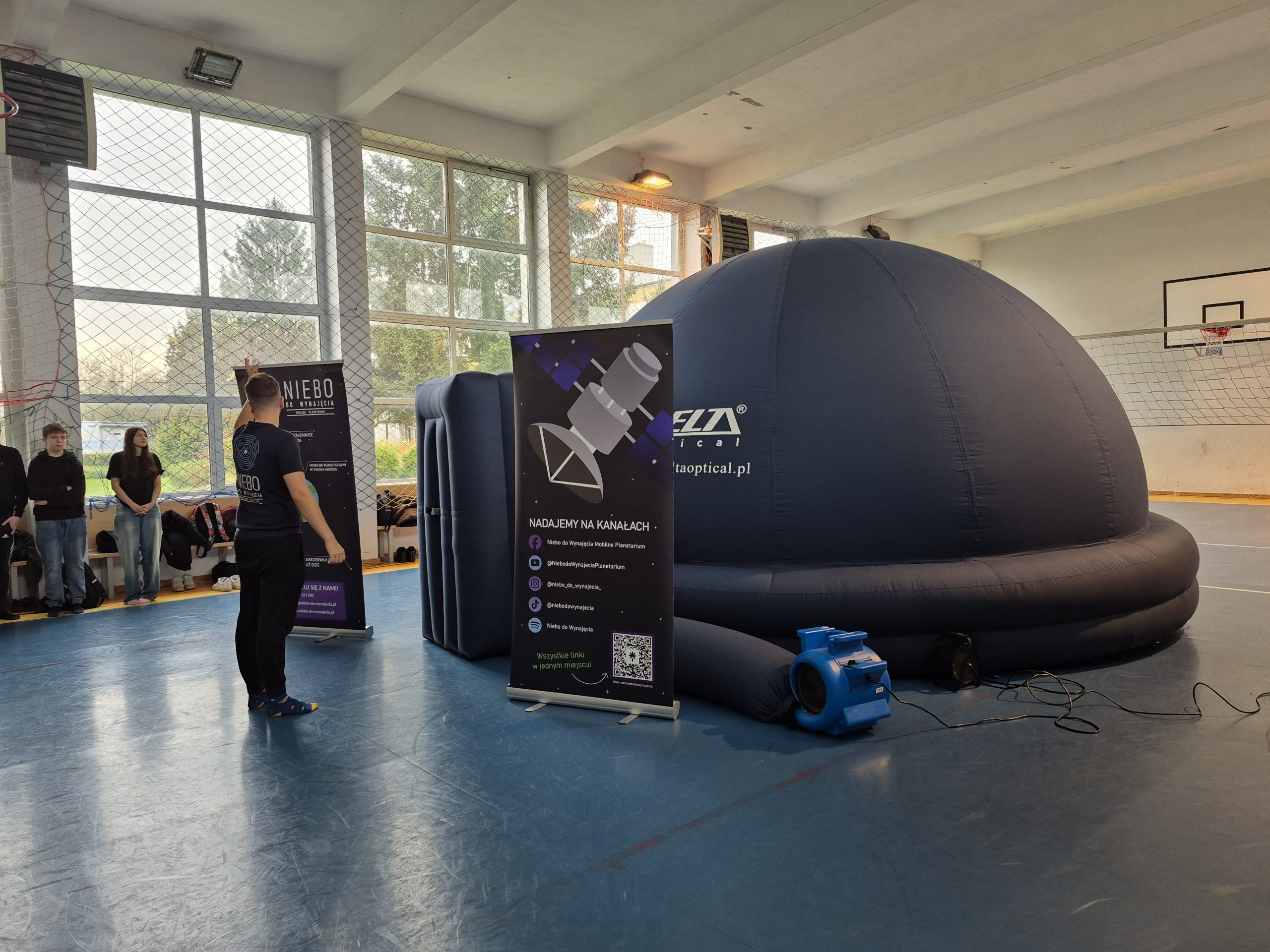 W piątek 14 listopada w naszej szkole gościliśmy Pana Macieja Wleklińskiego, który w swoim MOBILNYM PLANETARIUM przeprowadził zajęcia dla ponad 100 uczniów z klas technikum. W czasie warsztatów uczniowie mogli uzyskać odpowiedź na nurtujące ich pytania dotyczące budowy Wszechświata i odległości między planetami gwiazdami czy galaktykami. Pokazał także obszary naszej sfery niebieskiej gdzie możemy szukać ciekawych obiektów. Dziękujemy za ciekawe zajęcia i liczymy na kolejne spotkanie.
