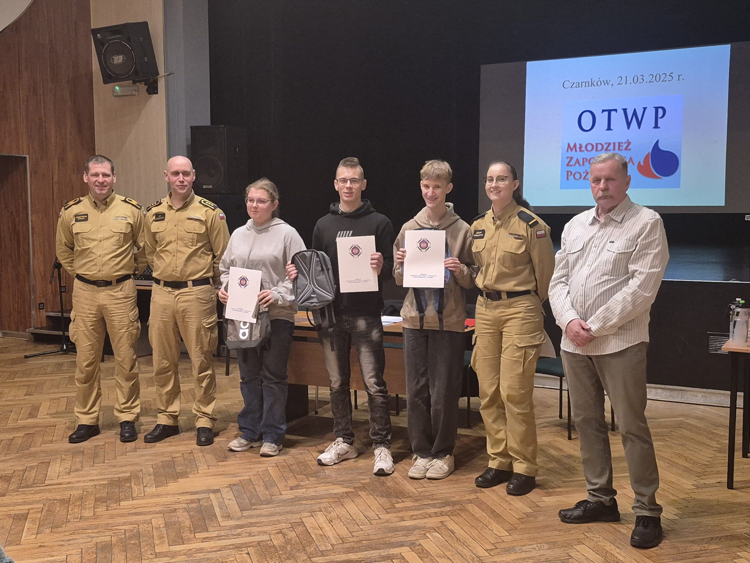 W piątek 21 marca w Czarnkowskim Domu Kultury odbył się etap miejsko-gminny Ogólnopolskiego Turnieju Wiedzy Pożarniczej „Młodzież Zapobiega Pożarom”. Celem konkursu jest popularyzowanie przepisów i kształtowanie umiejętności w zakresie ochrony ludności, ekologii, ratownictwa i ochrony przeciwpożarowej. Naszą szkołę reprezentowało dwóch uczniów z klas technikum oraz jeden ze szkoły branżowej. Najpierw uczniowie rozwiązywali test składający się z 40 pytań, a w drugim etapie osoby, które uzyskały najlepsze wyniki odpowiadały na pytania ustnie. W wyniku tych eliminacji okazało się, że dwóch uczniów Dawid Klimas z klasy 3g BS1 oraz Piotr Łusiewicz z klasy 2TI zakwalifikowali się do kolejnego etapu i będą reprezentować naszą szkołę podczas etapu powiatowego 27 marca br. Gratulujemy osiągniętego wyniku i trzymamy kciuki.
