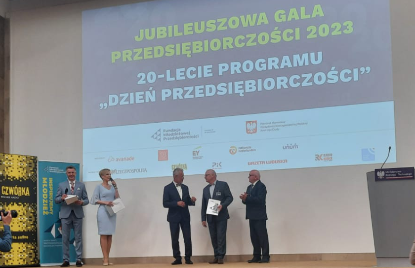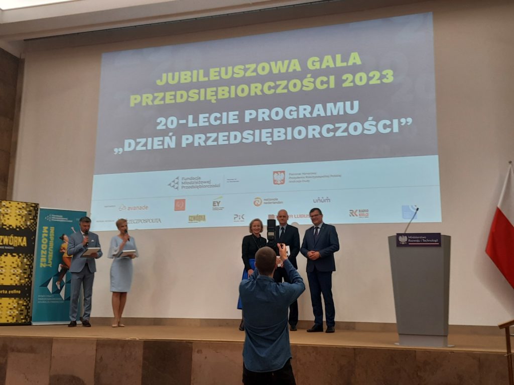 W dniu 12 czerwca br. w siedzibie Ministerstwa Rozwoju i Technologii odbyła się uroczysta Jubileuszowa Gala 20. edycji „Dnia przedsiębiorczości” 2023 objętego Honorowym Patronatem Prezydenta Rzeczypospolitej Polskiej Andrzeja Dudy. Za organizację Dnia przedsiębiorczości Fundacja Młodzieżowej Przedsiębiorczości otrzymała pierwszą nagrodę w konkursie na Najlepszą Inicjatywę Obywatelską Pro Publico Bono w kategorii Inicjatywy Edukacyjne. Budowanie mostów pomiędzy szkołą a środowiskiem gospodarczym oraz przyszłym miejscem pracy młodych ludzi jest ważnym elementem misji Fundacji.