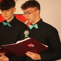 Tegoroczni maturzyści podziękowali dyrekcji, gronu pedagogicznemu i pracownikom szkoły za trud włożony w ich edukację i przygotowanie do kolejnego etapu życia. Przedstawiciele klas maturalnych dokonali również uroczystego aktu pożegnania sztandaru szkoły.  Podziękowania absolwentom w imieniu całej społeczności uczniowskiej złożyła przedstawicielka samorządu uczniowskiego, która wyraziła wdzięczność za wsparcie i zaangażowanie starszym koleżankom i kolegom. Uroczystość została wzbogacona występami artystycznymi uczniów klas młodszych, którzy odegrali skecze przedstawiające czekające maturzystów egzaminy. Młodsi koledzy obdarowali absolwentów symbolicznymi upominkami, które będą ich prowadziły w dalszej życiowej podróży.  Maturzystom wkraczającym w kolejny etap życia, życzymy powodzenia na maturze oraz sukcesów w życiu osobistym i zawodowym.